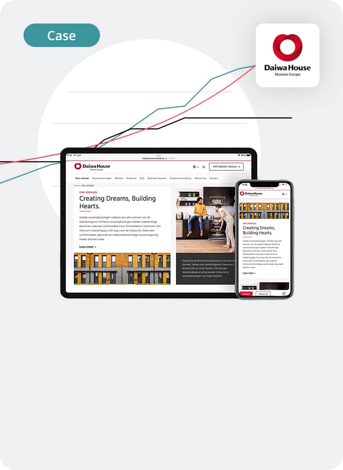 Deze opdrachtgevers ervaren de voordelen van onze flexibele werkwijze waarin we ze vanuit een begrijpelijke, uitvoerbare en meetbare online strategie helpen met het behalen van hun commerciële doelstellingen. Als sparringpartners werken we nauw samen aan het genereren van meer leads, omzet en medewerkers.