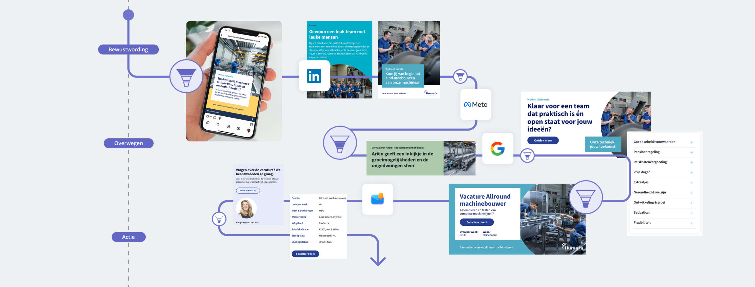 We ontwikkelden samen een structurele aanpak gebaseerd op de candidate journey, met een funnelstrategie die inspeelt op wat de doelgroep op elk moment wil horen.